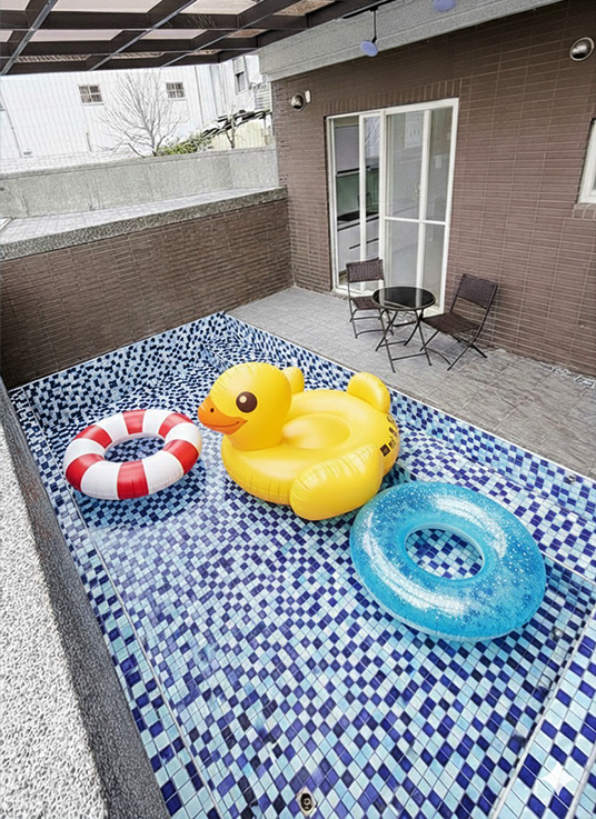 位於宜蘭縣壯圍鄉獨棟童趣風民宿-慢悠瘋民宿,進入大門後,最吸睛的是專屬打造的粉色系城堡溜滑梯及戲水池,讓孩子們能在安全空間中盡情玩樂;不僅如此,還提供齊全的影音娛樂設備及電動麻將桌,讓各年齡層皆能享有住宿樂趣。