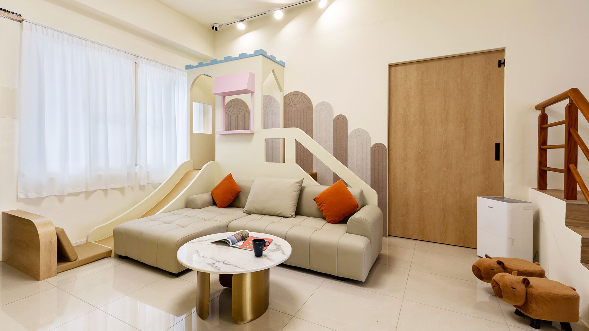 宜蘭民宿【慢悠瘋民宿】 位於宜蘭縣壯圍鄉獨棟童趣風民宿-慢悠瘋民宿,進入大門後,最吸睛的是專屬打造的粉色系城堡溜滑梯及戲水池,讓孩子們能在安全空間中盡情玩樂;不僅如此,還提供齊全的影音娛樂設備及電動麻將桌,讓各年齡層皆能享有住宿樂趣。